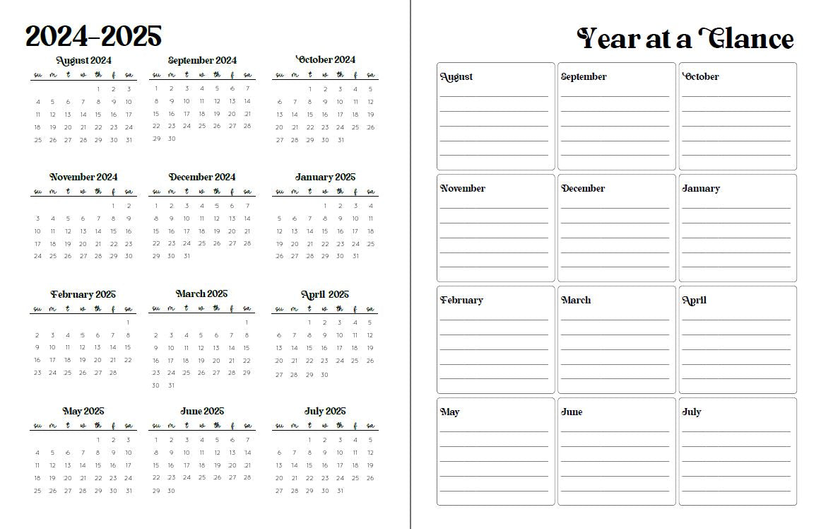 This letter-sized planner (8.5 x 11 inches) includes over 250 pages of beautifully designed, functional forms and spreads for you to map out a successful school year. This planner is printed on 60# (24 lb) uncoated paper, which is a popular choice for journals and notebooks. Covers are printed on 100 lb laminated cover stock.